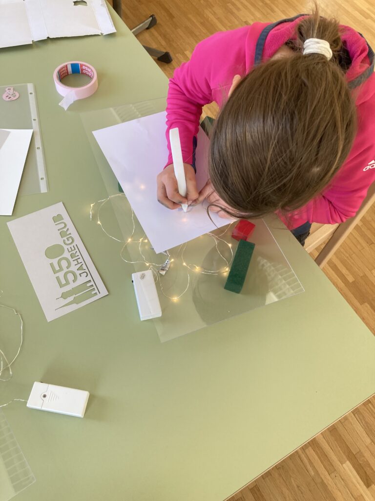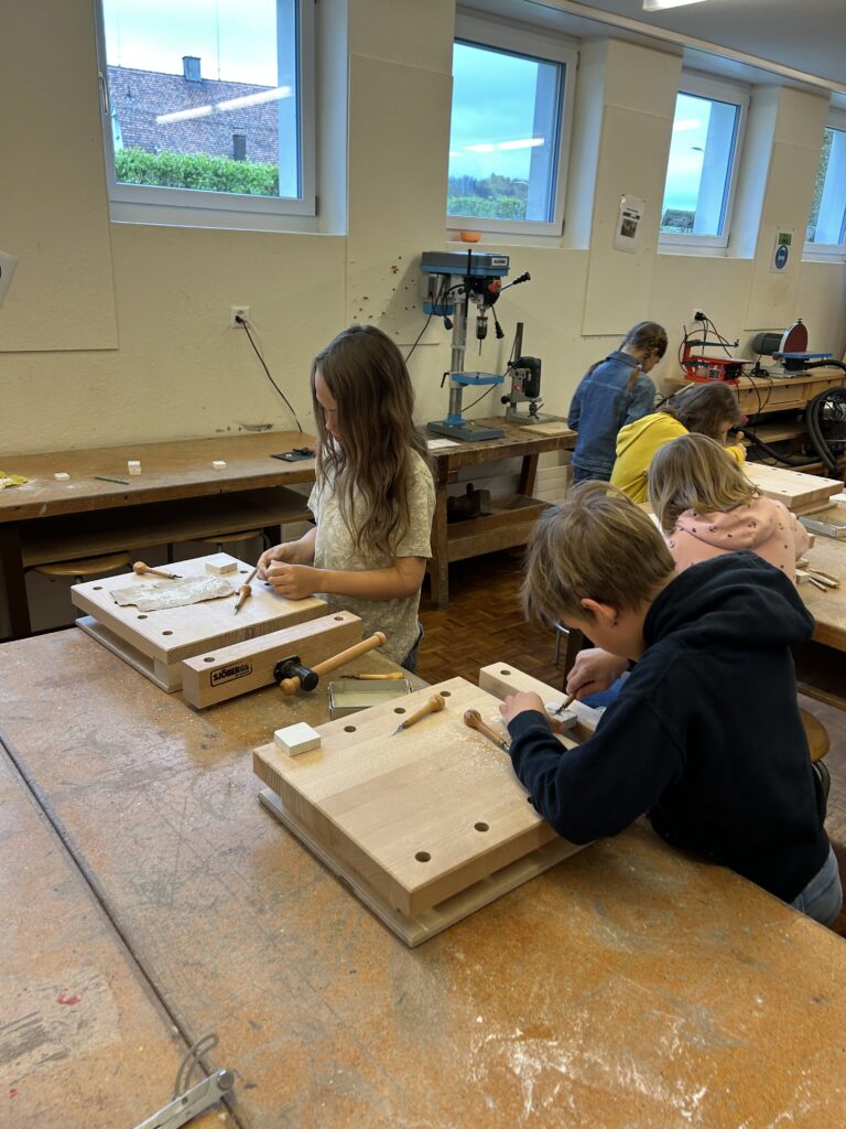Mein Lieblingsmoment war der Morgen mit Sonja Nef. Das Birchermüäsli, das wir in Grossmutters Küche gemacht haben, war lecker. In Grub gibt es drei berühmte Personen: Andrea Caroni, Sonja Nef und Reena Krishnaraja – ich kenne jetzt alle. Die Ateliers haben mir alle gefallen. Die Chriesisteinsäckli sind schön geworden. Grub ist ja mega alt. Die Wanderung zum höchsten Punkt von Grub war streng und schön. Ich habe das erste Mal mit Feder und Tinte geschrieben. Auf meinem Pullover ist ein Autogramm von Reena. Das Stempelschnitzen hat mir sehr gut gefallen. Ich fand den Foto-Orientierungslauf spannend. Beim Atelier «Spiele früher und heute» habe ich neue Spiele kennen gelernt. Wir durften Zinn giessen. Ich bin stolz auf mein gebasteltes Wappen. Auf meinem Lapbook stehen Informationen über Grub. Wir durften alte Ansichten aus Grub anschauen und im Dorf suchen. Ich habe Geschichten von früher und heute gehört.