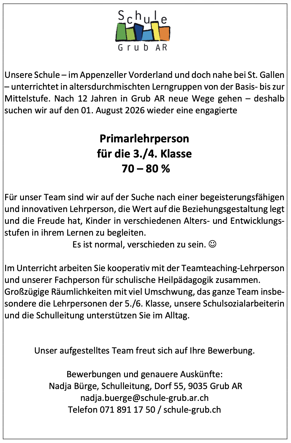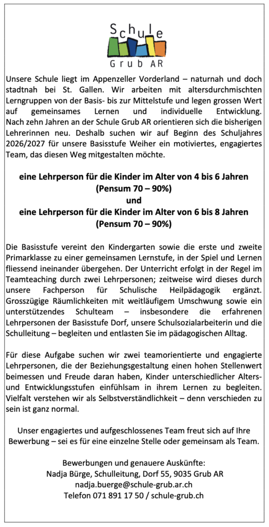 Stelleninserate (Basis- und Unterstufe) Stelleninserat Basisstufe (pdf)Stelleninserat Unterstufe (pdf)