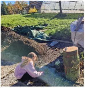 Im Sinne der Solidarischen Landwirtschaft werden die Kinder selbst aktiv. Sie helfen beim Schichten von Kompost, lernen geeignete Materialien kennen und verstehen, warum betriebseigener Kompost auf dem Hof Seebeli eine zentrale Rolle spielt. So wird der Kreislauf von Pflanzenresten, Bodenleben und neuem Wachstum konkret erfahrbar.