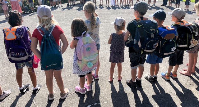 Nach den Ferien sind 78 Kinder in den Schulalltag gestartet, davon 9 neue Basisstufenkinder. Die Schulleiterin Nadja Bürge begrüsste beim Wocheneinstieg des ersten Schultages alle Kinder sowie die Lehrpersonen und insbesondere Alissia Rammal, neue Lehrperson in der Basisstufe Weiher.